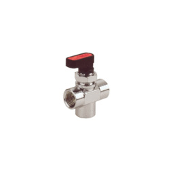 VANNE A BILLE 3 VOIES (3 x 1/4''F) EN LAITON NICKELE - SIEGE EN PTFE (téflon)