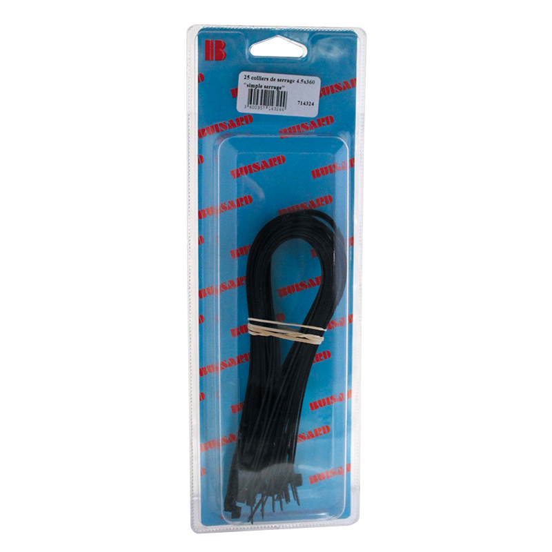 Accueil > Environnement atelier>Accessoires atelier>Collier de serrage>25 COLLIERS DE SERRAGE 4.8x370MM NOIR